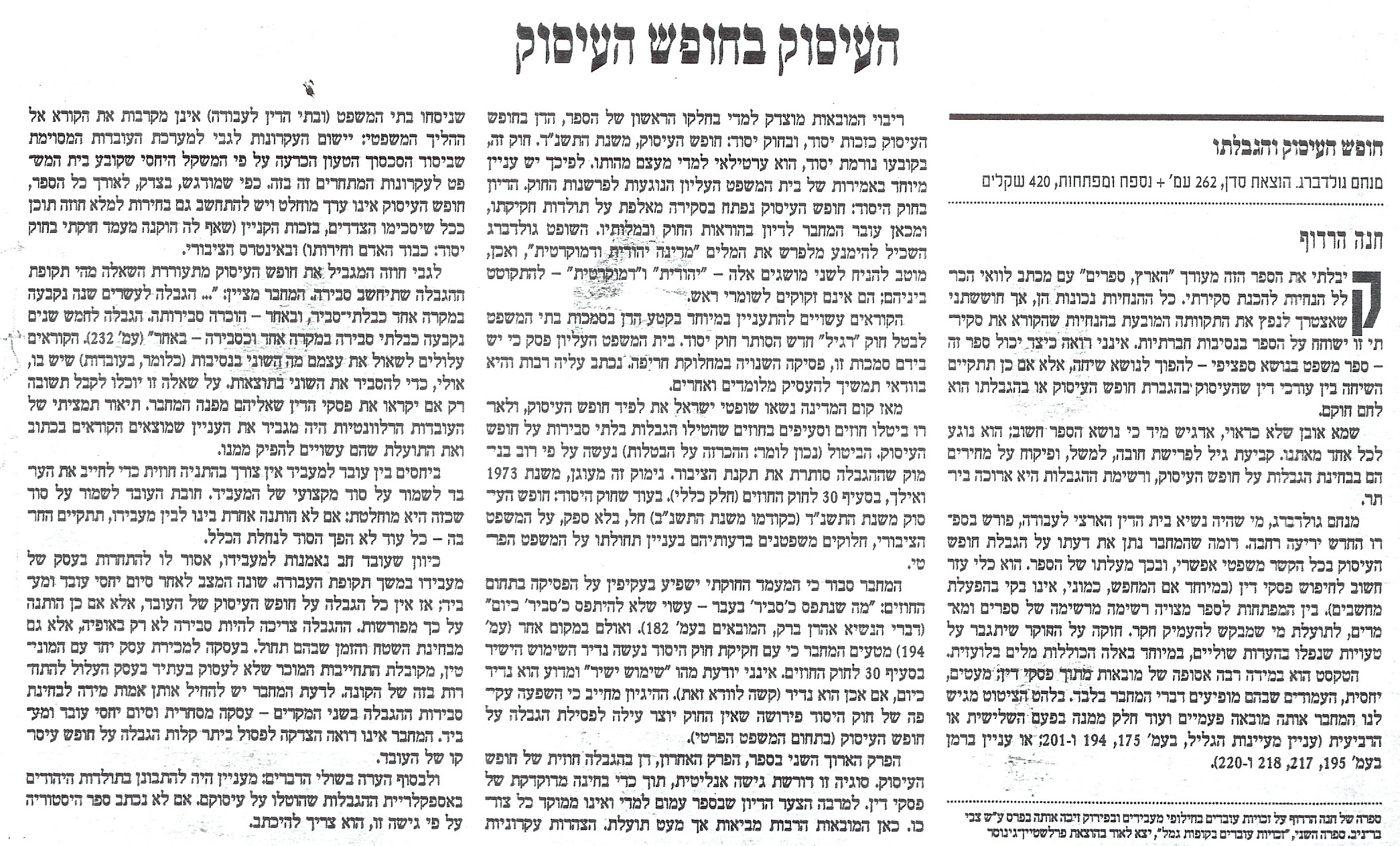 העיסוק בחופש העיסוק - חופש העיסוק והגבלתו